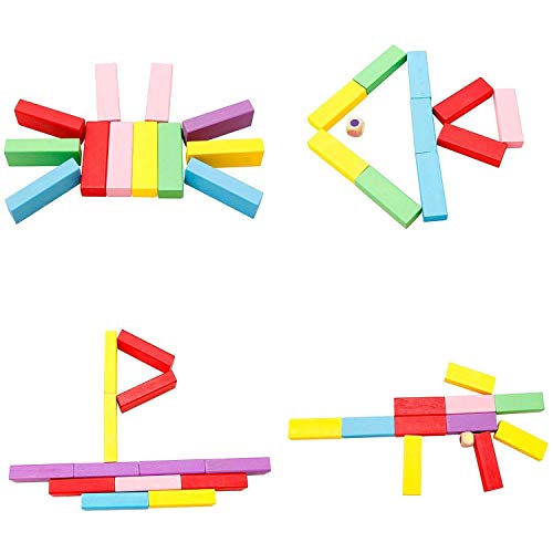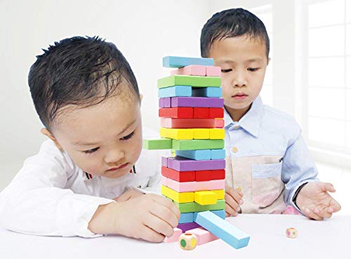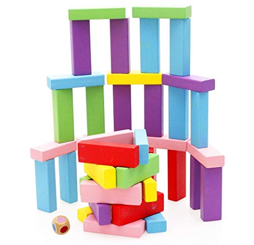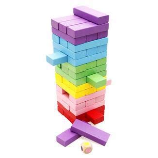 Other - مجموعة اللعب قطع خشبية مفعمة بالالوان لبناء برج لعبة تعليمية لافراد العائلة والاطفال