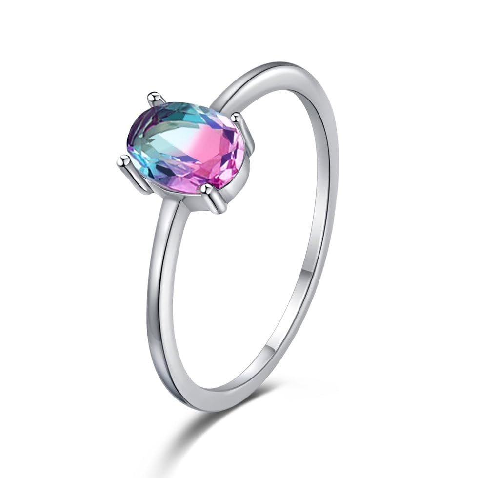 Generic - خاتم من الفضة عيار 925 مرصع بحجر الزركون الملون، مقاس الخاتم: 6