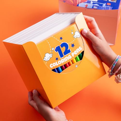 Generic - بوكس تلوين للأطفال يحتوي على 6 لوحات ذاتية اللصق وعلبة ألوان 12 لون فلوماستر!