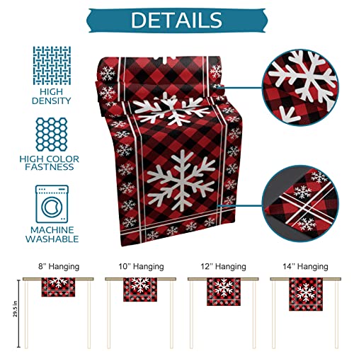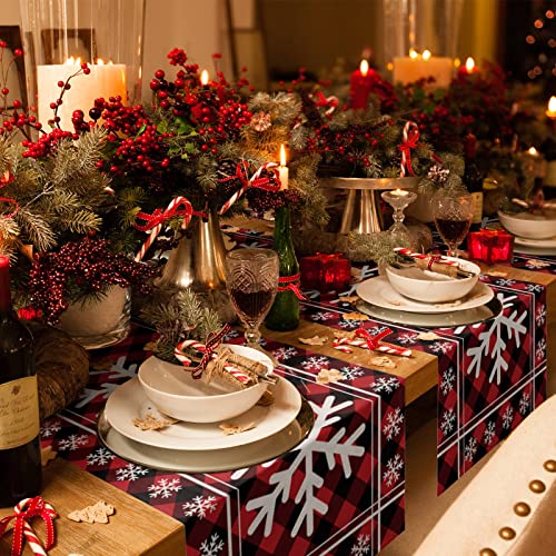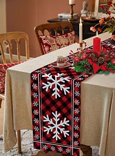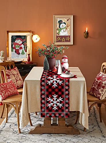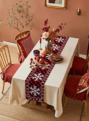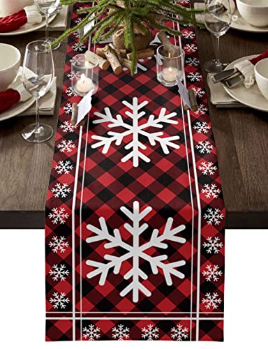 COLORSUM - مفرش ترابيزة مصنوع من القطن والكتان بتصميم غزلان وندفات الثلج للكريسماس وبتصميم بنقشة كاروهات حمراء لترابيزة العشاء والمطبخ وديكور الكريسماس من كلورسوم، مقاس 13×120 بوصة