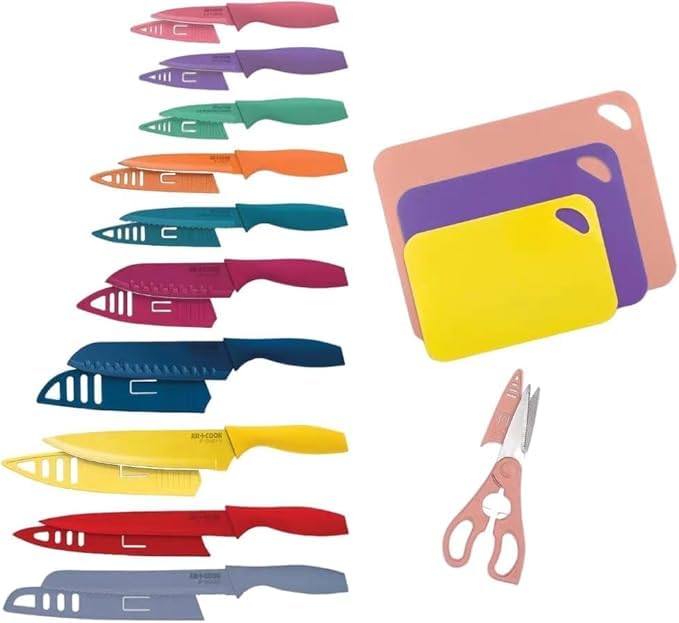 - ترميز الألوان: تساعد الألوان الزاهية المتعددة على منع التلوث المتبادل عن طريق تعيين سكاكين محددة لأنواع مختلفة من الطعام.