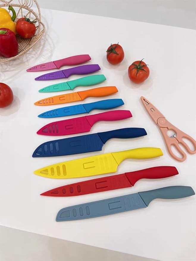 Generic - سكينة سيراميك ملونة مع لوحات تقطيع ومقصات مطبخ، مجموعة أدوات مطبخ من 12 قطعة