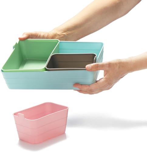 Spaceshoop - مجموعة صناديق تخزين صغيرة الحجم وملونة ومرنة مصنوعة من البلاستيك لتنظيم الأدوات المكتبية وأدوات الرسم (متعددة الألوان) مقاس S