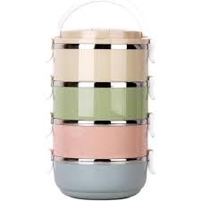 Generic - عمود حفظ طعام ألوان 4 دور استانلس من الداخل ضد الصدأ وحافظ للحرارة – مناسب للمدرسة والشغل والرحلات مع إحكام غلق قوي