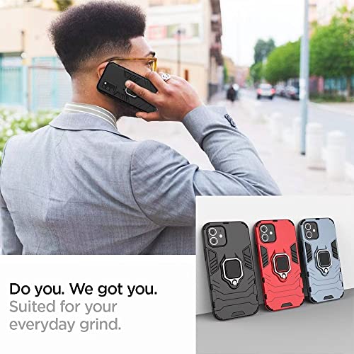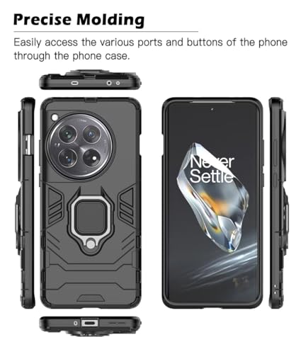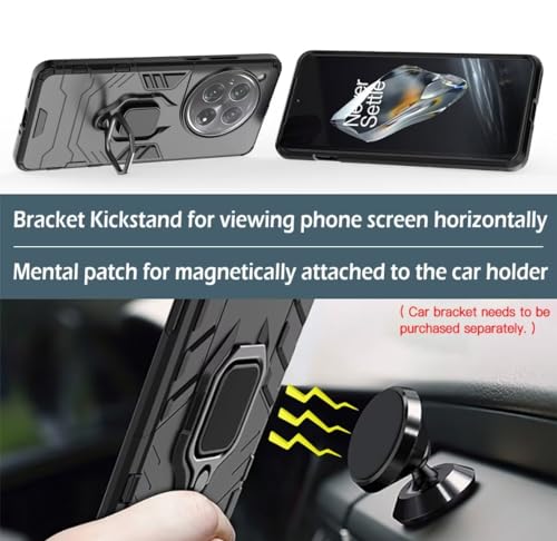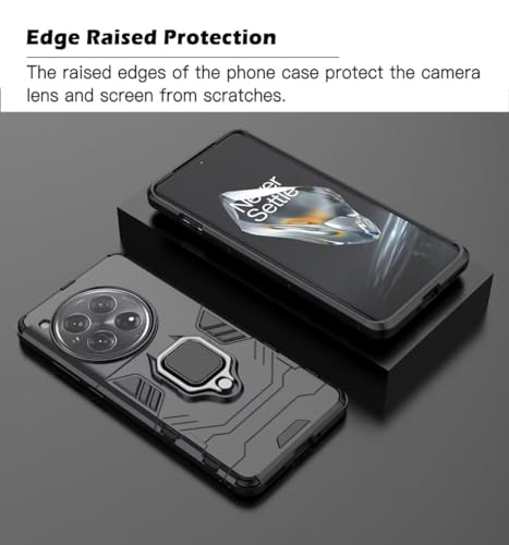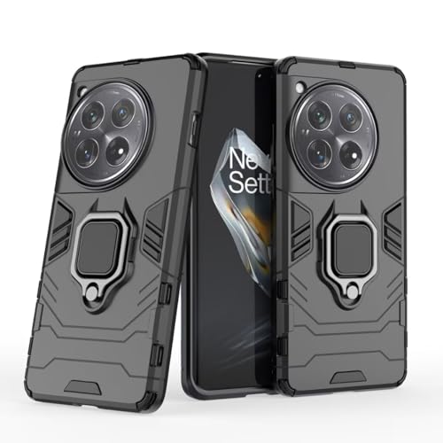 COMAKU - جراب حماية لموبايل ون بلس 12 برو من كوماكو مصنوع البولي يوريثين المقاوم للحرارة والبولي كربونات مضاد للصدمات مع حامل حلقي أسود