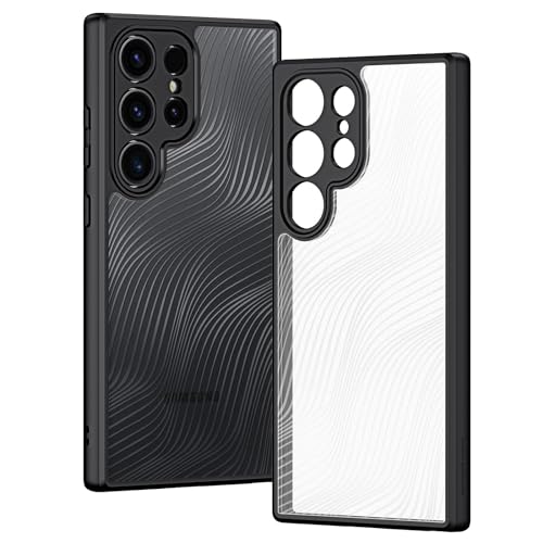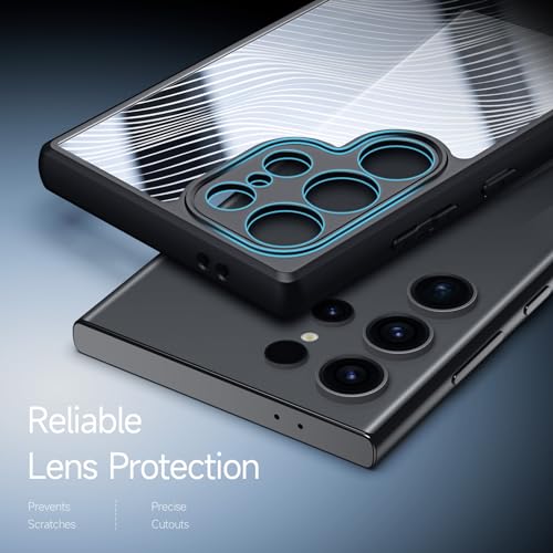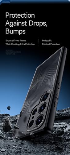 COMAKU - جراب حماية ممتص للصدمات لموبايل سامسونج جالاكسي S24 الترا من كوماكو خطوط سائلة شفاف صلب البولي يوريثين الحراري بحواف ناعمة متوافق مع S24 أسود
