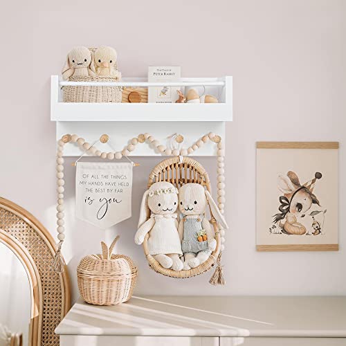 COMAX - أرفف منظمة صغيرة للكتب للأطفال من كومكس رف كتب قابل للتعليق لغرفة نوم الأطفال الصغار 3 على الحائط حامل للحضانة معلق للديكور المثبت أبيض خشب