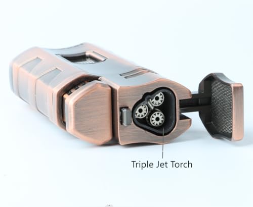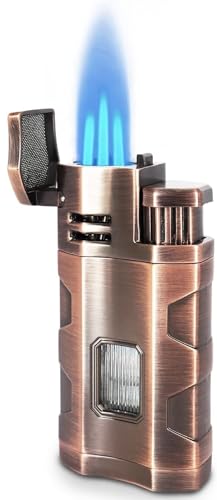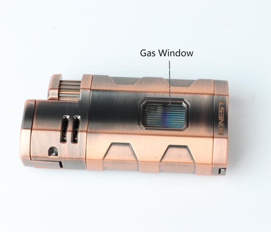 - ولاعة بشعلة شديدة التحمل، مصممة مع قاطع سيجار وجزء شفاف للغاز، يسهل معرفة مستوى الغاز داخل الولاعة. ولاعة لهب نفاثة عالية الجودة وقوية ومتينة.
