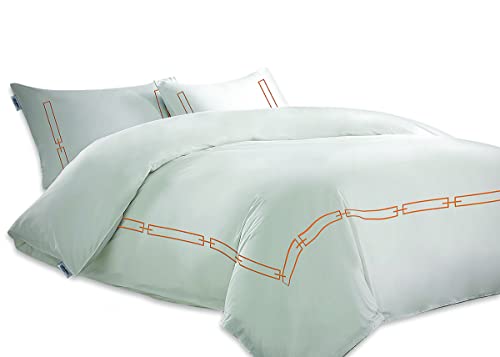 comfort - غطاء لحاف مطرز بوش 200 خيط من كونتيننتال كومفرت ابيض اوتوم جلوري- وبرتقالي مقاس 260×240 سم مع كيسين مخدة 50×75 قطن