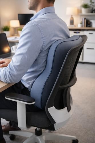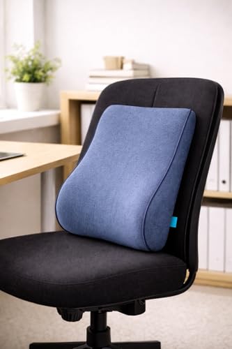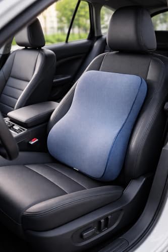 Generic - وسادة ظهر مريحة من الميموري فوم للسيارة • المكتب • المنزل | دعم اسفل الظهر (ازرق داكن رمادي)