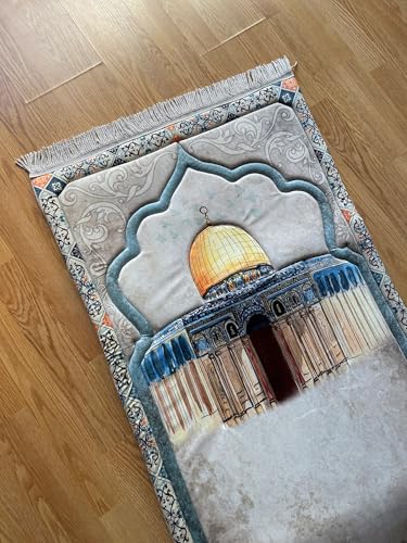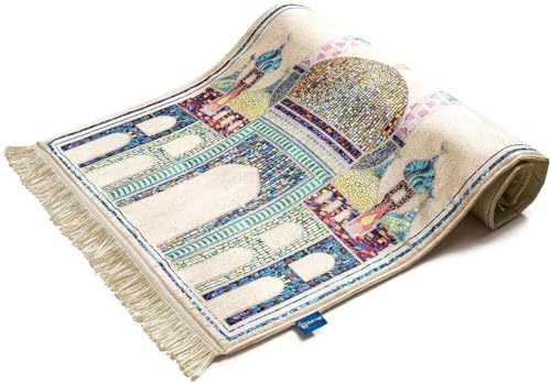 AREXOL - سجادة صلاة مريحة مكونة من ثلاث طبقات مبطنة للاستخدام الداخلي، ومصنوعة من قماش مطبوع بقاعدة مانعة للانزلاق ومستقرة، وتأتي مع نسخة من القرآن وسبحة لتسهيل الروتين اليومي في المنزل
