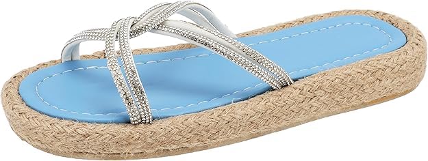 MADYOS - شبشب مريح بكعب عريض من القش 2 سم مع حزام علوي بسيط عند الاصابع ولمسة ماسية رفيعة، لون اخضر داكن، مقاس 37 EU