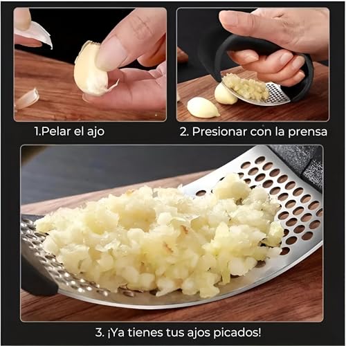 Generic - مطحنة ثوم مريحة 4 في 1 من الفولاذ مقاوم للصدأ لتقشير الثوم وتقطيعه وهرسه وعصره؛ مقبض مريح غير قابل للانزلاق، شفرات حادة مقاومة للصدأ لطهاة دقيقين