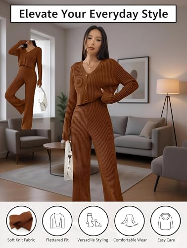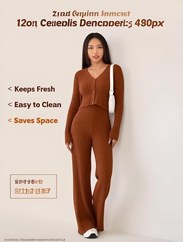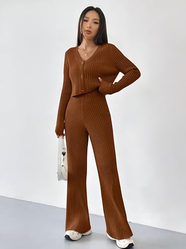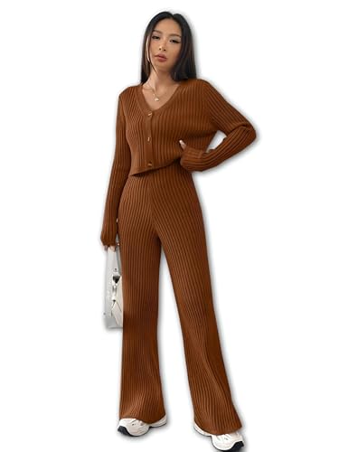 Generic - بيجامة مضلعة مضلعة مريحة للبنات - خامة عالية الجودة، مقاس واحد يناسب 50-75 كجم، بني انيق، مثالية للارتداء الكاجوال والنوم