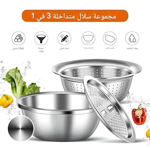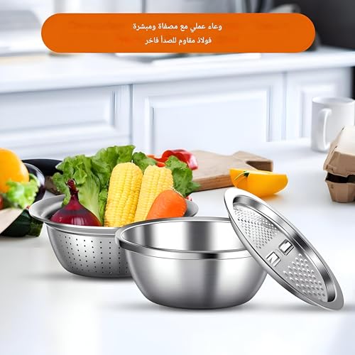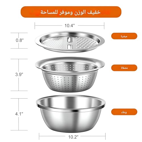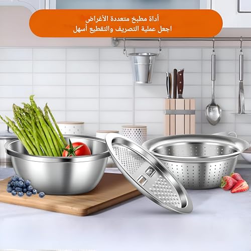 - تجمع أداة المطبخ متعددة الاستخدامات هذه بين ثلاث وظائف أساسية: مبشرة لتقطيع وتقطيع الجبن والخضروات وسلة تصريف للمعكرونة والنودلز ووعاء خلط كبير للتحضير. يتشابك كل مكون بسلاسة، مما يجعل إعداد الطعام وتنظيفه أسهل من أي وقت مضى. لا حاجة إلى مساحة عمل فوضوية مع أدوات متعددة!