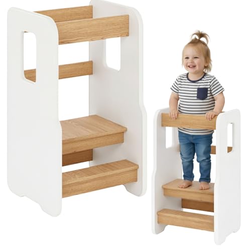 ComfortCove - برج تعليمي للاطفال من كومفورت كوف، مساعد مطبخ للاطفال، برج تعليمي مونتيسوري، برج تعليمي، قابل لتعديل الارتفاع، ابيض/بلوط