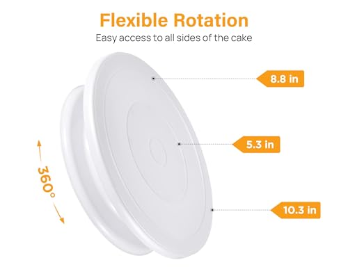 - تصميم قوي وغير قابل للانزلاق: يوفر القرص الدوار سطحًا غير قابل للانزلاق من أجل الثبات، مما يضمن بقاء الكيك في مكانه عند التزيين، مع هيكل متين لمتانة تدوم طويلًا.