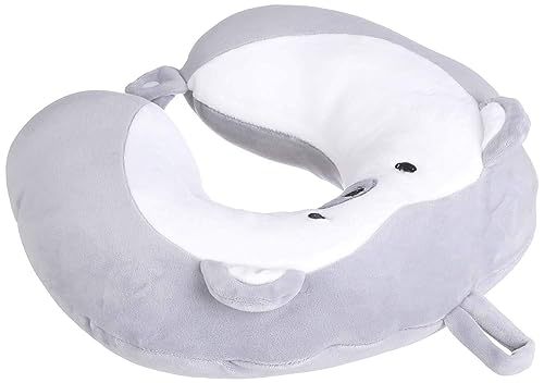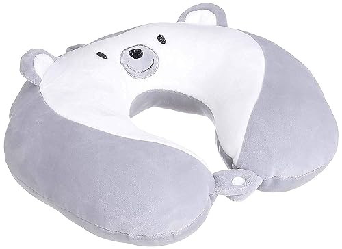 Generic - مخدة رقبة مريحة وناعمة للسفر على شكل حرف U للسيارة والسفر والمكتب والطائرة من سوبر درايف - أبيض ورمادي (تصميم دبدوب)