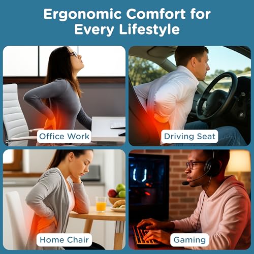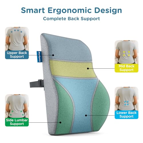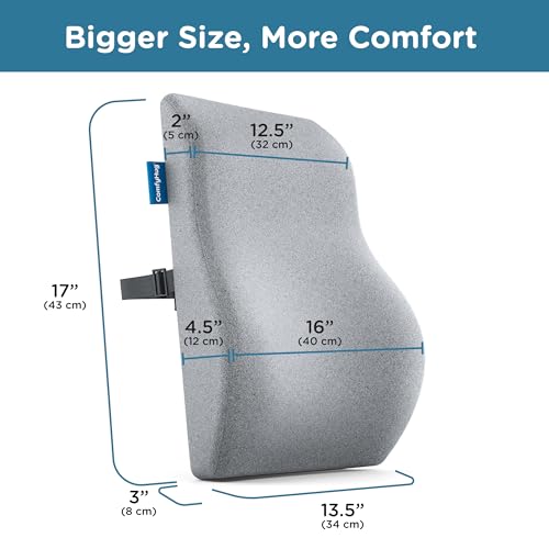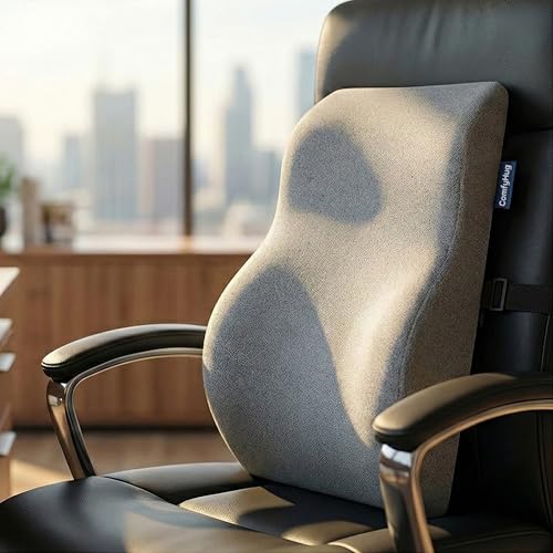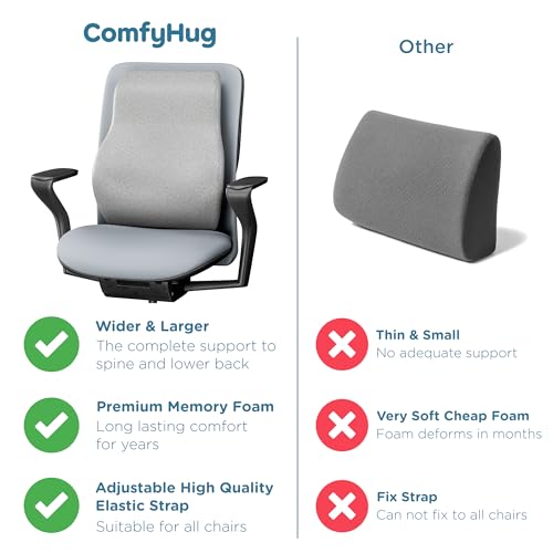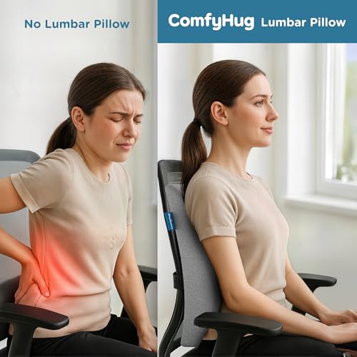 ComfyHug - مخدة لدعم أسفل الظهر لكرسي المكتب ومقعد السيارة، مخدة ظهر طبية من فوم ميموري لدعم الوضعية وتخفيف آلام الظهر، مسند ظهر مريح للجلوس لفترات طويلة من كومفي هاج (رمادي)
