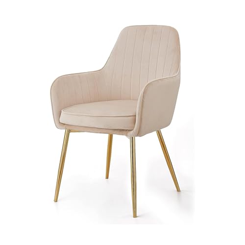 Comfynest - كرسي مكياج من الحديد المطاوع بتصميم نورديك من كومفينيست، كرسي لغرفة النوم، كرسي اظافر مع مسند ظهر، كرسي طعام فاخر (بيج)