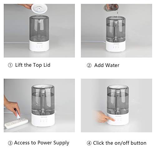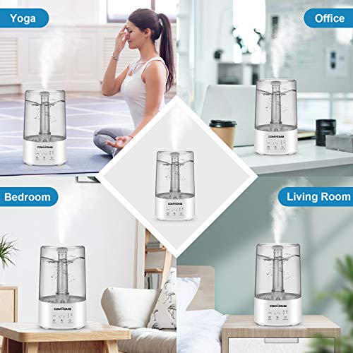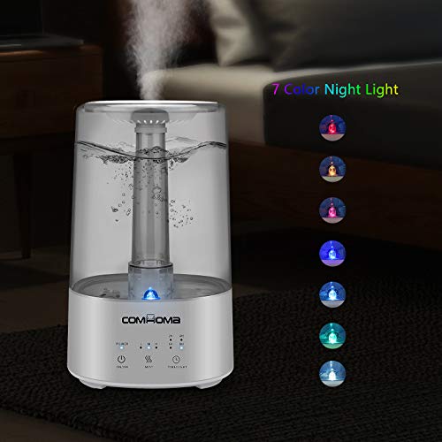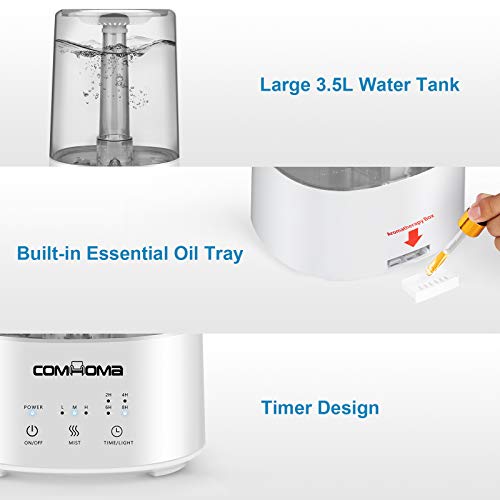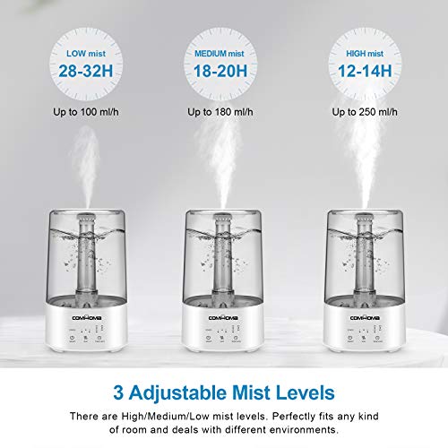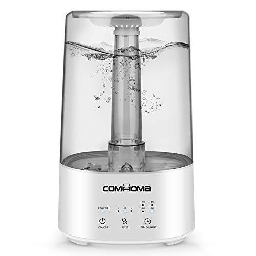COMHOMA - مرطب هواء بالموجات فوق الصوتية ورذاذ بارد من كوم هوما، مرطب هواء بـ 3 مستويات رذاذ قابلة للتعديل سهل التنظيف بمؤقت واغلاق تلقائي لغرفة النوم والغرف الكبيرة