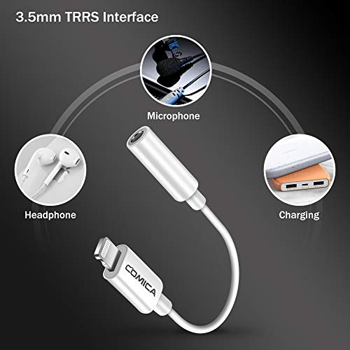 COMICA - COMICA CVM-SPX-MI 3.5mm TRRS to Lightning Audio Adapter, Lavalier Microphone Cable for iPhone & iPad, Lightning to 3.5mm Mic Converter Dongle for Recording, Vlogging, Podcast