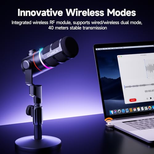COMICA - ميكروفون ألعاب D10 برو XLR/USB-C اي جوي لتسجيل المدونة الصوتية، ميكروفون ديناميكي سلكي/لاسلكي بإضاءة الفضاء اللوني RGB، كتم الصوت، تقليل الضوضاء PS4 وPS5 والبث المباشر ويوتيوب من كوميكا