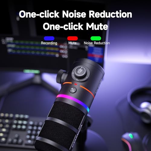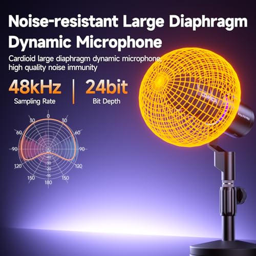 - 【تحكم متعدد الوظائف وتأثيرات إيحتوي الميكروفون اللاسلكي المكتبي على أربعة مستويات لضبط الكسب (Gain)، ومنفذ مراقبة صوتية 3.5 ملم، وثلاثة أوضاع مسبقة الضبط للمعادلة الصوتية (EQ)، بالإضافة إلى 6 تأثيرات إضاءة RGB لخلق تجربة جو متنوعة.ضاءة مخصصة】يحتوي الميكروفون اللاسلكي لسطح المكتب على ضبط كسب بأربع سرعات، ومراقبة إرجاع الأذن 3.5 ملم، وثلاثة أوضاع معادل مضبوطة مسبقًا، و6 تأثيرات إضاءة الفضاء اللوني RGB لخلق تجربة جو متنوعة.