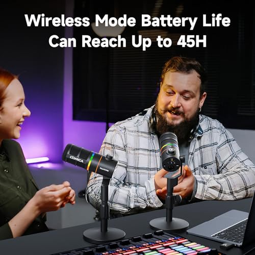 - 【عمر بطارية طويل للغاية وشحن أثناء استخدام التصميم】يصل عمر البطارية في الوضع اللاسلكي إلى 45 ساعة، حيث يحتوي على بطارية ليثيوم مدمجة قابلة لإعادة الشحن. كما أنه يدعم الشحن أثناء الاستخدام لتسجيل وبث مباشر بلا قلق.