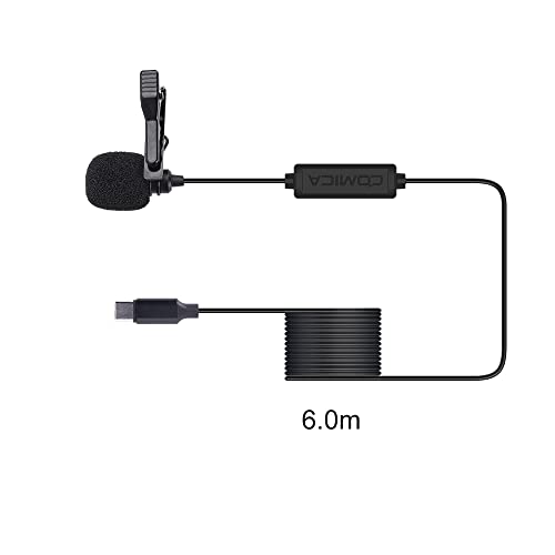 COMICA - ميكروفون لافالير متعدد الاتجاهات بمنفذ USB نوع سي بطول 6 متر للموبايلات الذكية واللاب توب مع مدخل من كوميكا أسود