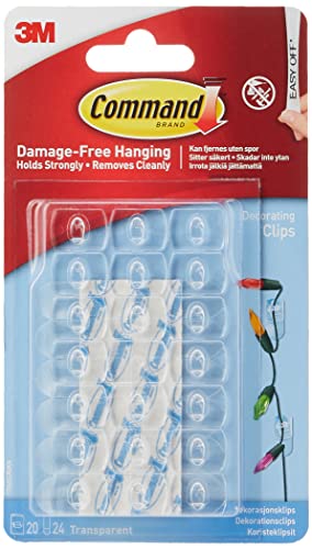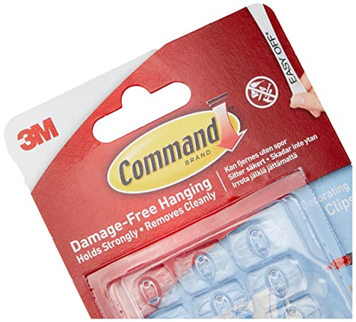 Command - مجموعة مشابك تزيين 17026CLR_ES من كوماند، لون شفاف مجموعة من 20 مشبك و24 شريط، لتزيين بدون تلف
