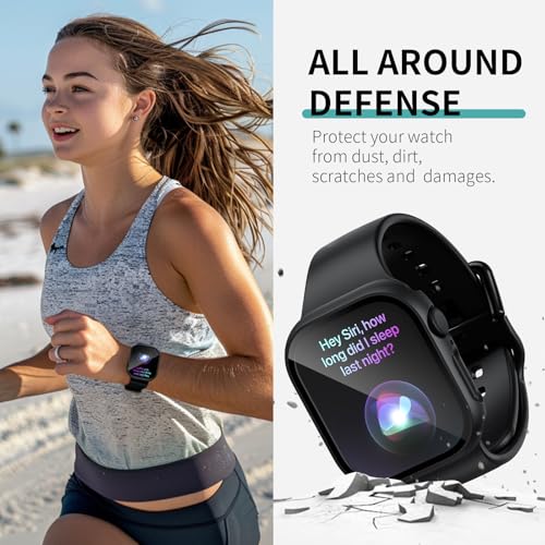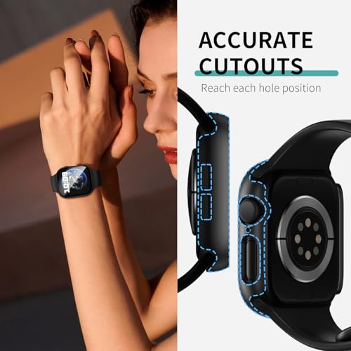 COMMUTER - جراب حماية من 3 قطع مع شاشة حماية من الزجاج المقوى لساعة ابل 10 (2024) سلسلة 10 46 ملم، غطاء واقي رفيع للغاية من البولي كربونات عالي الدقة لساعة اي ووتش 46 ملم