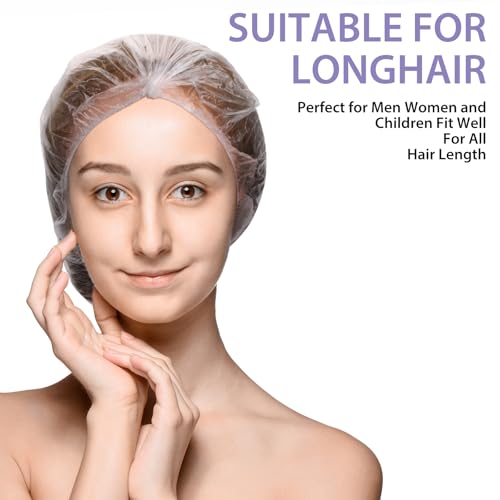 COMNICO - طواقي الاستحمام للاستعمال مرة واحدة من كومنيكو، قبعات استحمام شفافة مقاومة للماء مصنوعة من البلاستيك المرن للسفر للنساء والأطفال والبنات لصالونات التجميل والسفر والمنتجعات الصحية والمنزل (100 قطعة)