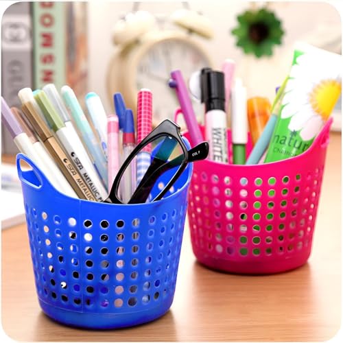 Generic - سلة بلاستيكية صغيرة الحجم ومتعددة الاستخدامات بألوان زاهية، مناسبة لتنظيم المستلزمات المكتبية الصغيرة في المنزل أو المكتب، مجهزة بتصميم دائري ومقابض حمل مريحة (2)