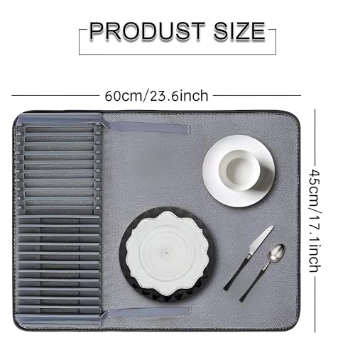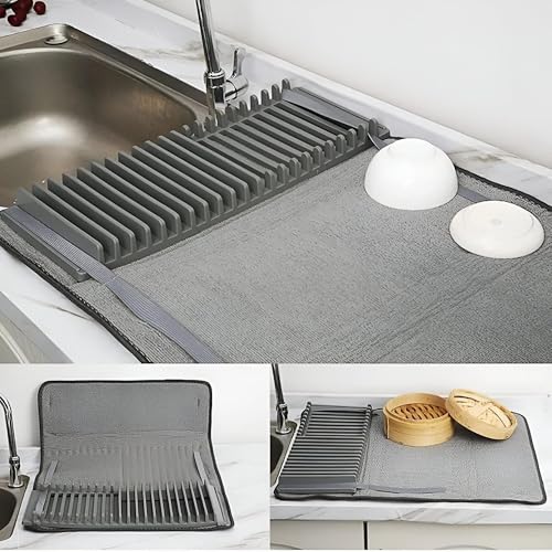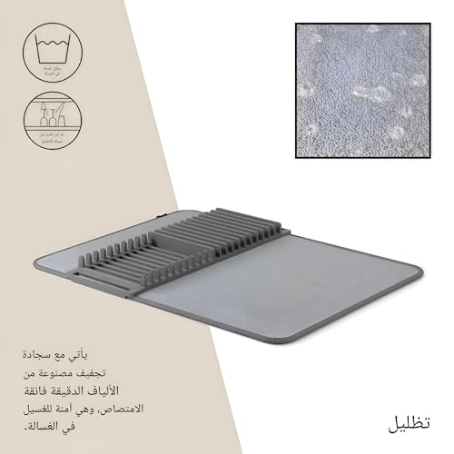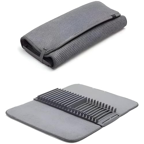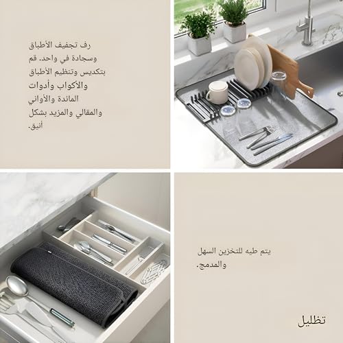 - يُعد رف تجفيف الأطباق المصنوع من الألياف الدقيقة هذا حلاً موفرًا للمساحة يجمع بين رف تجفيف وسجادة في منتج واحد. يسمح لك بتكديس وتنظيم الأطباق والأكواب والأواني والأواني والمقالي أثناء تجفيفها في الهواء، مما يحافظ على مطبخك مرتبًا وفعالًا.