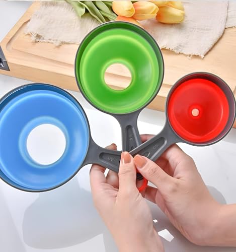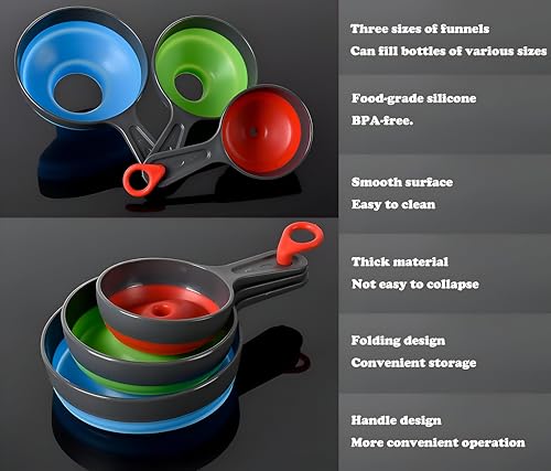 Generic - مجموعة اقماع مدمجة - مجموعة اقماع قابلة للطي من 3 قطع للاستخدام المريح في المطبخ والتخزين الموفر للمساحة