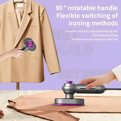 - مقبض مريح مع دوران 90° للتحكم المريح أثناء الاستخدام المستمر، مصمم لتقليل إجهاد اليد وزيادة المرونة عند الكي من أي زاوية.
