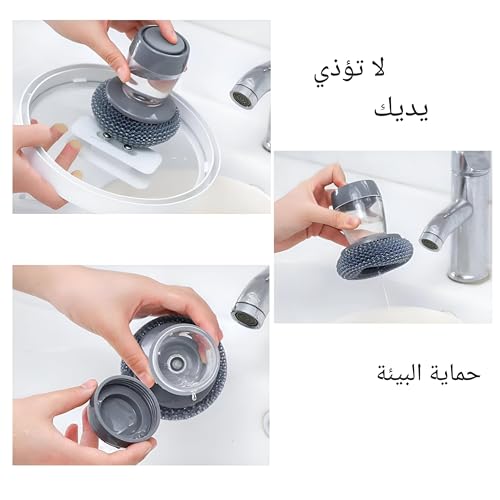 - لا يحتوي هذا المنتج على سائل ولكنه يحتوي على خزان تخزين داخلي للصابون، مما يتطلب تعبئة يدوية. تتميز بآلية سهلة الاستخدام لرش الصابون عبر زر، مع رأس فرشاة قابل للإزالة والاستبدال، مما يعزز فعالية التنظيف والراحة.