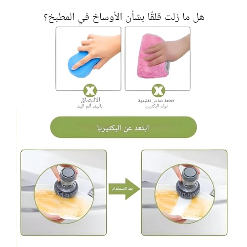 - مواد عالية الجودة، صلابة معتدلة، لن تتلف الجزء السفلي من الوعاء، يمكنها إزالة البقع العنيدة والشحوم والأوساخ، سهلة التنظيف أواني المطبخ، غسل الأطباق والأواني، وما إلى ذلك، ويمكن أن تكون آمنة للاستخدام، أواني الطبخ غير اللاصقة، موقد المطبخ، حوض الغسيل والبلاط.