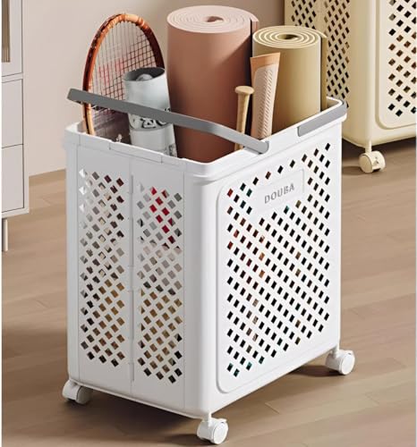Generic - سلة غسيل الملابس صغيرة الحجم - سلة بلاستيكية قابلة للطي 50 × 36 سم مع 4 عجلات، مصممة لسهولة الحركة، مثالية لتنظيم الملابس والألعاب وغيرها