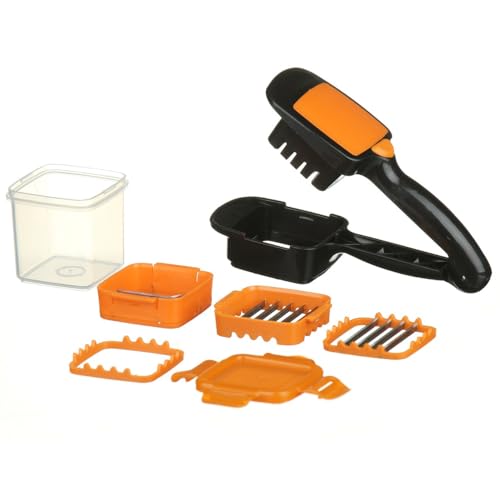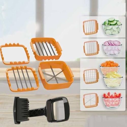 - 5 شفرات قابلة للتبديل للحصول على نتائج متعددة: مجهزة بخمس شفرات قوية من الستانلس ستيل، فهي تصنع البطاطس المقلية والمكعبات والشرائح والقطع الدقيقة بدقة. سواء كنت تحضر البصل أو الجزر أو البطاطس أو الفاكهة، فإن الشفرات تحافظ على الحدة والقوام، مما يضمن أن أطباقك تبدو وطهي أفضل. أداة واحدة تحل محل أدوات التقطيع المتعددة للحصول على مطبخ أكثر تنظيمًا وخاليًا من الفوضى.