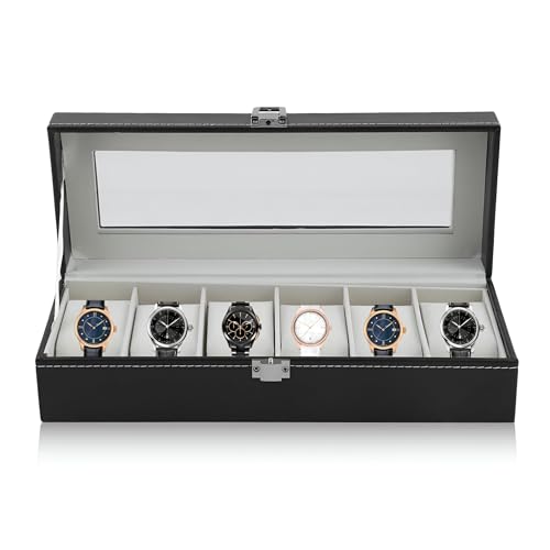 Generic - منظم ساعات مدمج يسع 6 ساعات مصنوع من الجلد الصناعي بتصميم أنيق مع إغلاق محكم، هدية مميزة لعيد الأب أو عيد الأم