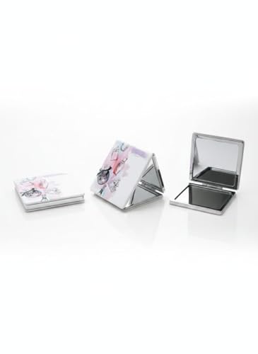 Generic - مرآة جيب مدمجة، تصميم باريسي، مع حافظة معدنية، مرايا مزدوجة قابلة للطي