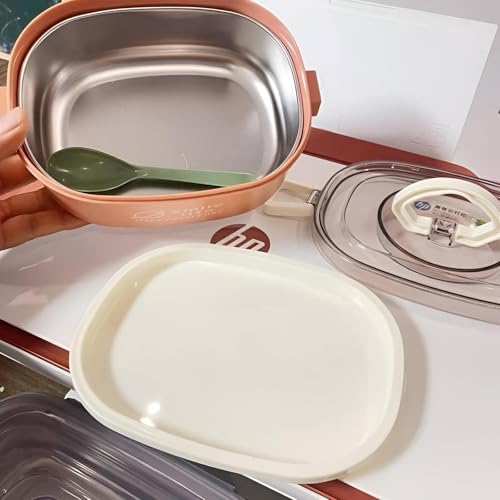 Generic - حاوية طعام صغيرة من الستانلس ستيل - صندوق غداء مزدوج الطبقات مع غطاء امن وملعقة للوجبات الطازجة والمرتبة خلال الايام المزدحمة