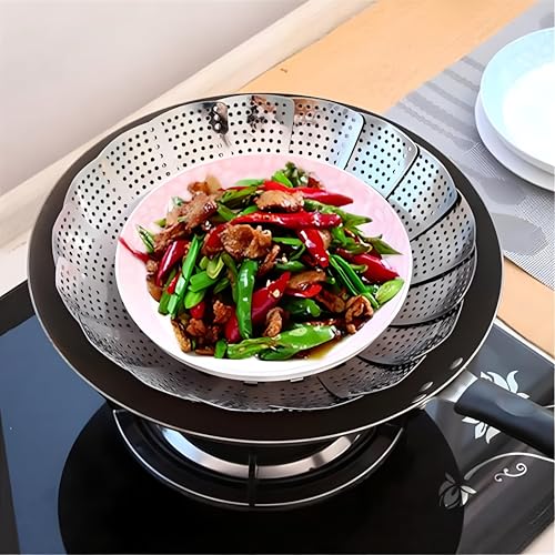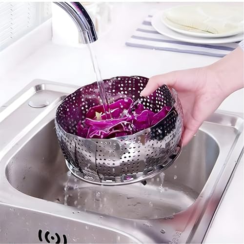 Generic - سلة طهي على البخار بحجم صغير، يمكن فتحها وإغلاقها بسهولة، تستخدم للطهي الصحي، لتحضير الخضروات بطريقة أنيقة، متوفرة بمقاسين مختلفين (لون فضي، حجم صغير)