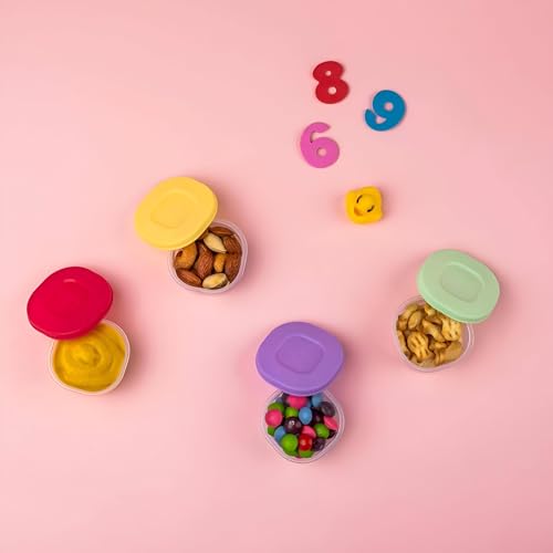 Generic - علب تخزين صغير الحجم - علب صغيرة مع أغطية زاهية، مثالية لتقسيم الصلصات والوجبات الخفيفة؛ مانعة للتسرب وتحافظ على المحتويات طازجة وتمنع الانسكابات، 4 قطع