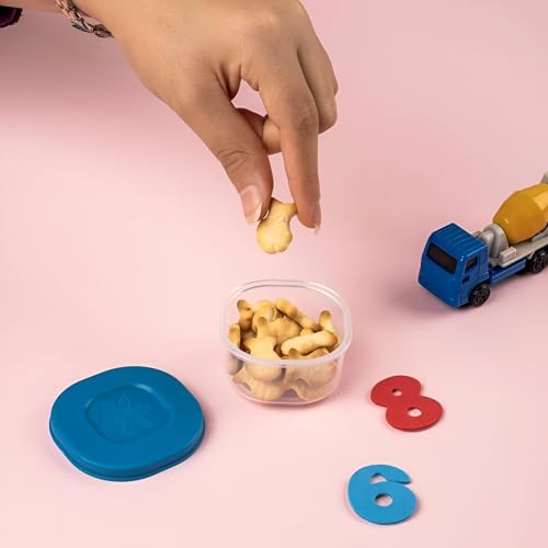 - تتضمن مجموعة تخزين الوجبات الخفيفة المكونة من أربع قطع حاويات صغيرة مع أغطية زاهية مرمزة بالألوان وسدادات محكمة الغلق مانعة للتسرب تحافظ على الطعام طازجًا وتمنع الانسكابات أثناء النقل. تتيح لك الأجسام الشفافة رؤية ما بداخلها في لمح البصر، بينما تسهل الأغطية الزاهية التعرف السريع عند تعبئة وجبات الغداء.