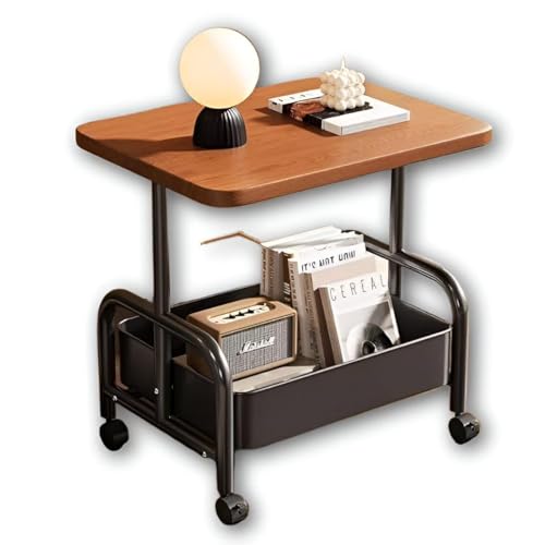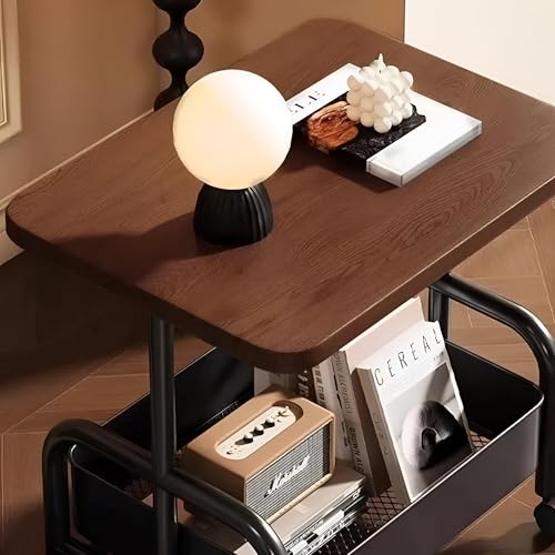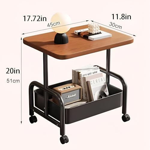 Generic - طاولة تخزين صغيرة الحجم - سطح من خشب الجوز، اطار معدني، قاعدة دوارة 360 درجة مع عجلات، مثالية للمنازل الصغيرة والشقق او الاستخدام متعدد الوظائف.