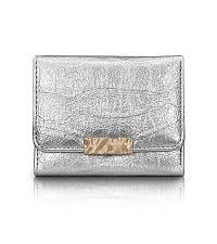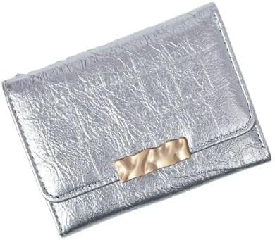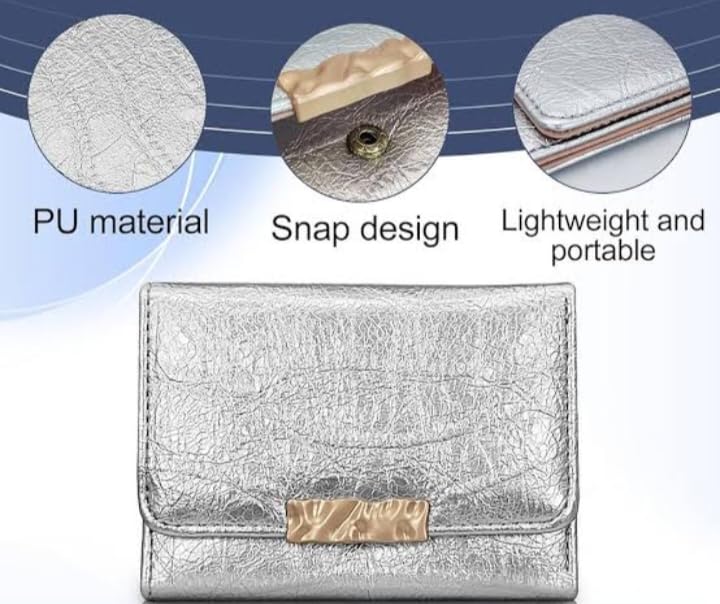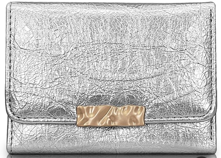 GLAMIA - Compact Trifold Wallet, Metallic Leather, Gold Metal Accent, Women's Purse-108 (silver)