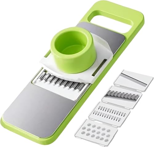 Generic - قطاعة شرائح الخضروات والبطاطس صغيرة الحجم بشفرات من الفولاذ المقاوم للصدأ قابلة للتبديل مع واقي أمان، مقبض سهل الامساك وتصميم سريع التنظيف للطبخ المنزلي وتحضير الوجبات الخفيفة